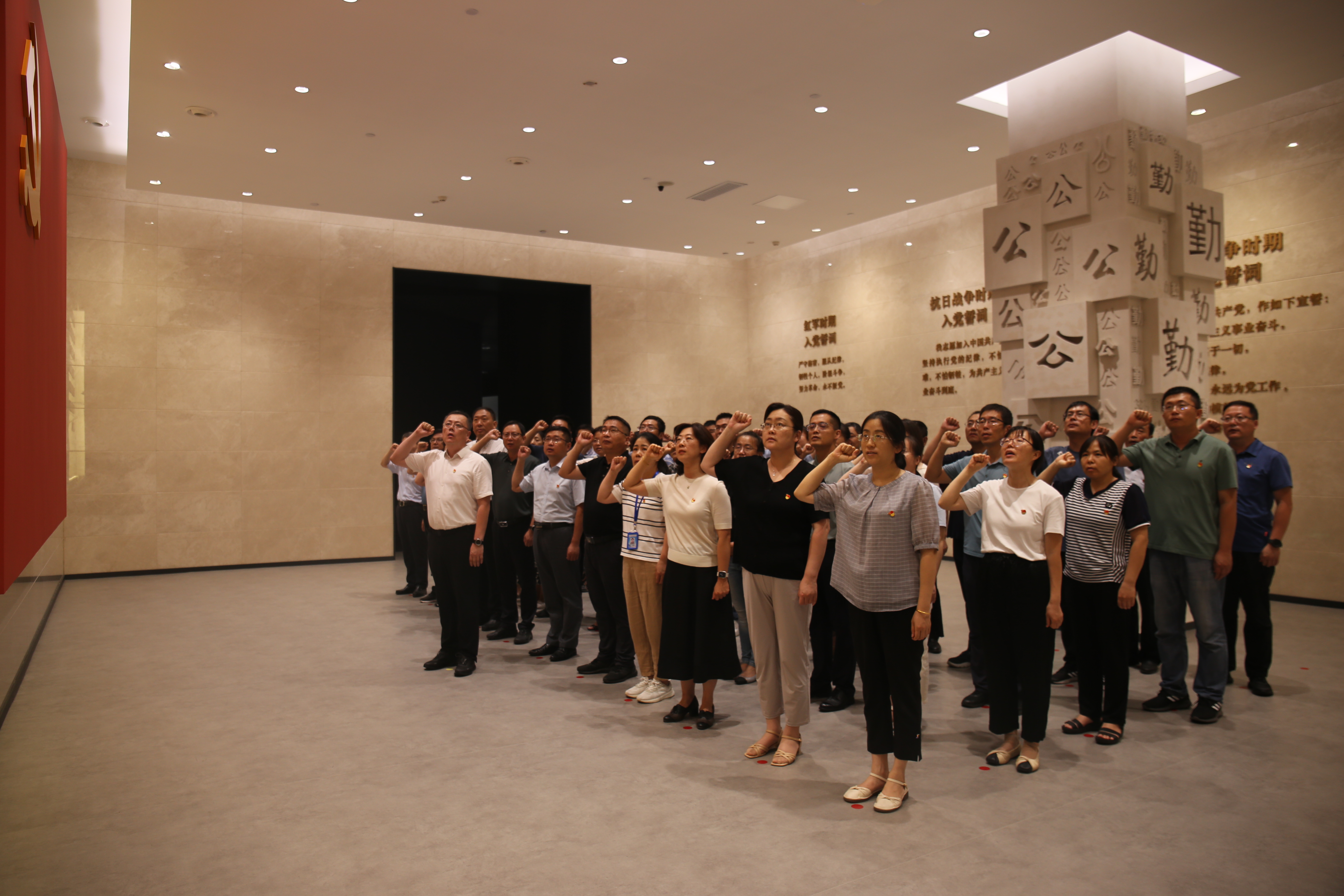 在講解員帶領(lǐng)下,大家依次參觀(guān)序廳及“加強紀律性、革命無(wú)不勝”“全面從嚴治黨在山東”“弘揚優(yōu)秀傳統廉政文化”等多個(gè)專(zhuān)題展廳,現場(chǎng)觀(guān)看了警示教育片。通過(guò)廉政實(shí)物、圖文、講解等方式,帶領(lǐng)全體黨員干部系統學(xué)習了中國共產(chǎn)黨誕生以來(lái)積極探索并不斷加強紀律建設的光輝歷程,深入了解我省持續推進(jìn)全面從嚴治黨、加強黨風(fēng)廉政建設和反腐敗工作取得的成果。在宣誓廳,全體黨員干部在鮮紅的黨旗下莊嚴宣誓,重溫入黨誓詞,堅定為黨的事業(yè)、共產(chǎn)主義事業(yè)奮斗終身的決心,表示爭當勤政廉潔、勇于擔當的表率,以實(shí)際行動(dòng)推動(dòng)食品藥品檢驗研究事業(yè)高質(zhì)量發(fā)展。