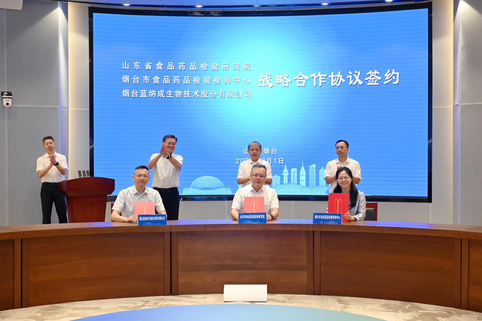 簽約儀式上,山東省食藥檢院、煙臺市食品藥品檢驗檢測中心與煙臺藍納成生物技術(shù)股份有限公司共同簽署三方戰略合作協(xié)議,構建“政府主導、機構協(xié)同、企業(yè)參與”的放射性藥品創(chuàng )新發(fā)展新模式。